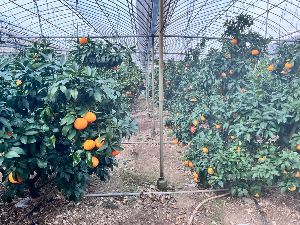 かつて柑橘用ハウスは、温室みかんの栽培を主流に整備されてきましたが、燃料価格の高騰等により栽培面積及び生産量が減少。その後、県オリジナル品種である「紅まどんな」の登場により、温室みかん用ハウスを転用した栽培が広がることで、地域の柑橘農業は新たな展開を行うことが出来ました。
